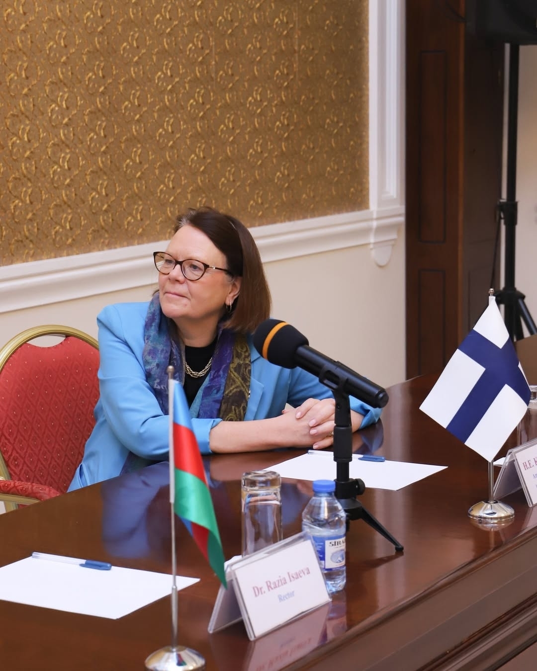 The event was held with the participation of the university’s rector Dr. Raziya Isayeva, faculty deans, academic staff and students. Rector Dr. Raziya Isayeva welcomed the Ambassador and discussed opportunities for educational and scientific cooperation between Finland and Azerbaijan.